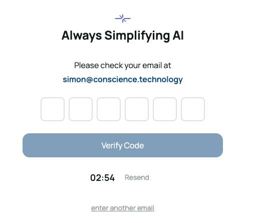 Check the email you entered for a verification code. Enter the 6-digit code included in the email.