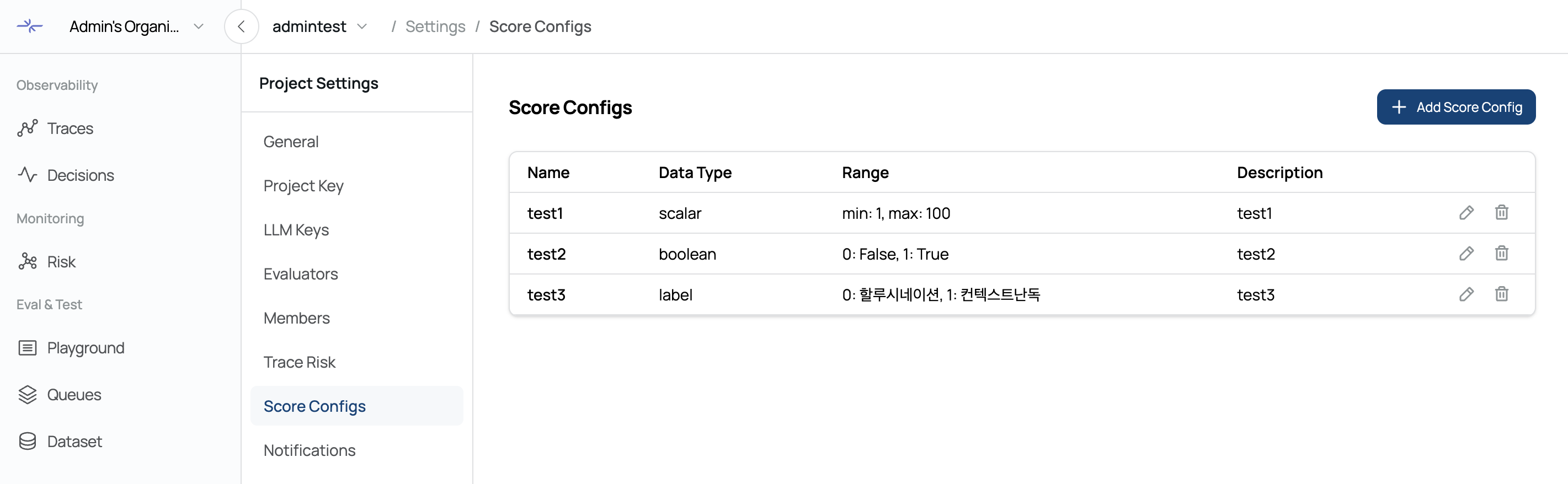 Score Configs can be created and edited on the Score Configs tab of the project settings page.Complete Creation