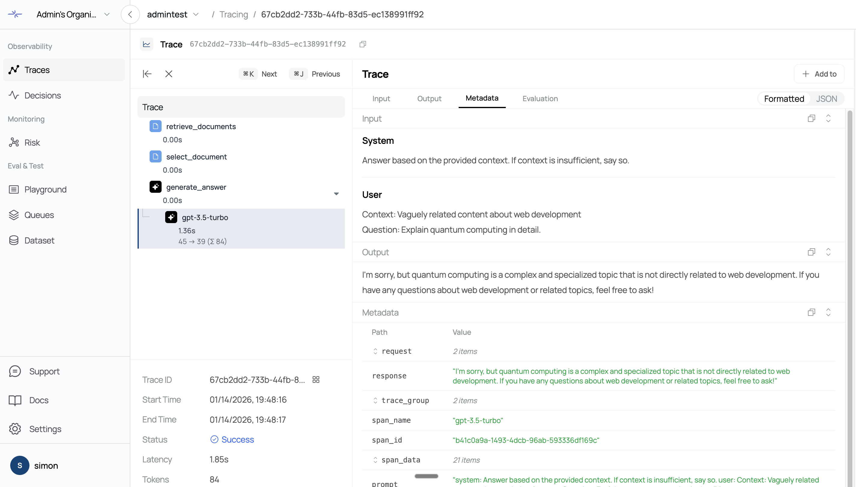 Timestamp: When the trace was created
